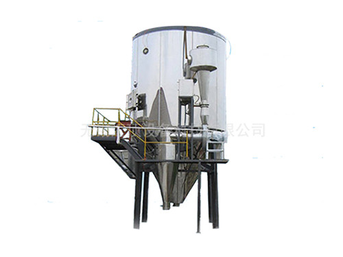 空氣經過過濾和加熱進入干燥室,通過2-20MPa的高壓將液料送入壓力式霧化器霧化成小液滴,經過霧化后的液滴與熱空氣在干燥室內充分接觸,在10-30秒內迅速完成干燥過程,得到粉體或細小顆粒的成品。成品連續地由干燥塔底部和旋風分離器中輸出,廢氣經除塵器由引風機排空。