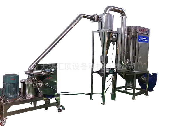 WFJ型超微粉碎機結(jié)構(gòu)設(shè)計緊湊,外形美觀,外殼采用不銹鋼制造,機內(nèi)裝有分級輪,能同時完成超微粉碎和微粒篩選兩道工序,該機采用雙水冷和風(fēng)冷卻構(gòu)造,在粉碎作業(yè)是主機不升溫,可粉碎各種熱敏性物料,且內(nèi)部與物料接觸磨損位可采用耐磨剛玉陶瓷制作,該設(shè)備應(yīng)用于食品,只要,化工,電池,非金屬,金屬等各種粉體材料的加工粉碎。該機由主機,輔機,電箱,除塵器,收集料倉等組成,具有風(fēng)選式、無篩、無網(wǎng),粒度均勻等優(yōu)點,生產(chǎn)過程連續(xù)進(jìn)行。物料由料斗進(jìn)螺旋輸送器進(jìn)入粉碎室,被高速旋轉(zhuǎn)的刀片剪切粉碎,通過負(fù)壓風(fēng)運的方法把物料運入旋風(fēng)分離器,帶式除塵器,粉碎刀盤與分級輪轉(zhuǎn)速采用變頻控制,產(chǎn)品粒徑可通過調(diào)節(jié)粉碎室刀盤及分級輪的轉(zhuǎn)速來控制,過程實現(xiàn)自動化。